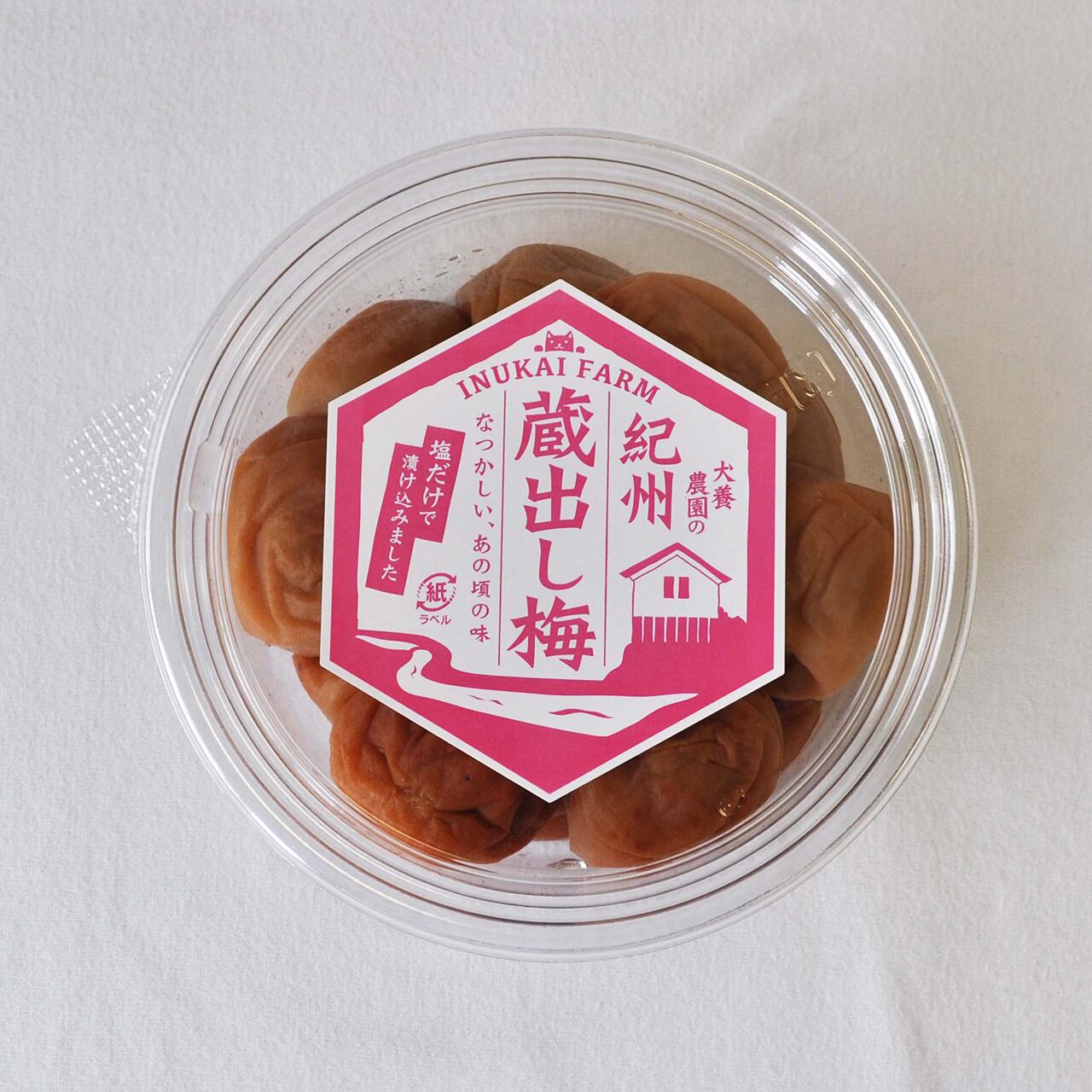 原材料には、和歌山県田辺市産の犬養農園の南高梅を使用、昔ながらの製法で、梅と塩だけで漬け込みしています
